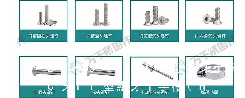 1、頭部形狀頭部形狀各式各樣。有圓頭(半圓頭)、扁圓頭、圓頭凸緣(帶墊)、扁圓頭凸緣(帶墊)、盤頭、盤頭凸緣(帶墊)、沉頭、半沉頭、圓柱頭、球面圓柱頭、喇叭頭、六角頭、六角法蘭頭、六角凸緣(帶墊)頭等。2