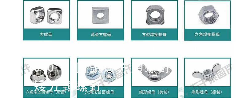 螺絲 螺絲釘可分為:不脫出螺釘、組合螺釘、墻板釘、纖維板釘、鏈帶螺釘、鉆尾螺釘、微型螺釘、電子螺釘、木螺釘等等。根據它的頭型又可分為:半沉頭、六角頭法蘭面、沉頭方頭、扁圓頭、圓柱頭、盤頭等等,根據螺絲的槽 螺母依據屬性主要有國標(GB)、德標(DIN)、國際標準(ISO)、日標(JIS)、美標(ASTM/ANSI)等標準。其中、國標、德標、日標用M表示(例如M8、M16),美制、英制則用分數或#表示規格(如8#、10#、1/4、3/8)。