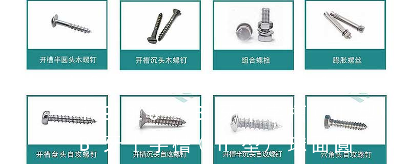 1、Flat:平頭 (鎖入后,頂部與工作件齊平)2、Oval:色拉頭、O頭、半沉頭 3、Round:圓頭 4、Pan:圓扁頭 5、Truss:大圓扁頭 6、Hex:六角頭 A-5:Finish Code/外觀處理。公制自攻螺絲 :于品名后方直接標示 Tapp 外扳擰:六角、六角法蘭面、六角凸緣、六角花形等;內扳擰:一字槽、十字槽H型(Phillips)、十字槽Z型(Pozidriv)、十字槽F型(Frearson)、四方槽(Scrulox)、復合槽、內花鍵、內六角花形(梅花槽)、內三角、內六角